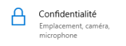 Vérifier les autorisations d'accès au micro et à la caméra dans les paramètres de l'ordinateurProcédure : Vérifier les autorisations d'accès au micro et à la caméra dans les paramètres de l'ordinateur⚓Guide réalisé sous Windows 10.ProcédureCliquez sur le bouton « Démarrer » situé tout en bas à gauche de votre écran ⚓Ouvrez les paramètres ⚓Cliquez sur « Confidentialité » ⚓Dans la colonne de gauche, cliquez sur « Caméra »⚓Vérifiez que l'autorisation des applications à accéder à la caméra est bien en état « Activé »⚓Dans la colonne de gauche, cliquez sur « Microphone »⚓Vérifiez que l'autorisation des applications à accéder au micro est bien en état « Activé »⚓